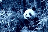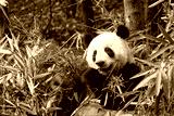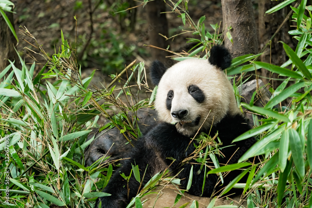 Giant panda eating bamboo leaves