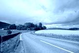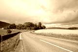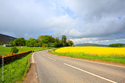Road in the conutry with Rape fields in Springtime, Scotland
