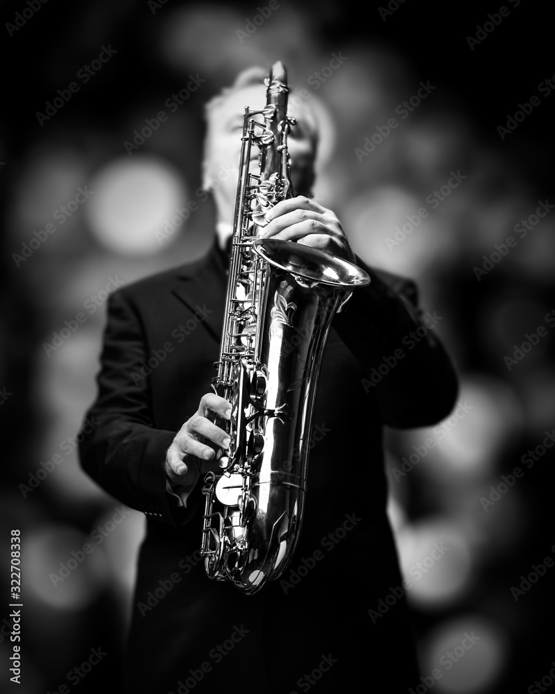 Jazz Musician Playing Tenor Saxophone (black and white)