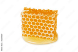 Honey honeycomb piece isolated on white background, close-up, packing design element