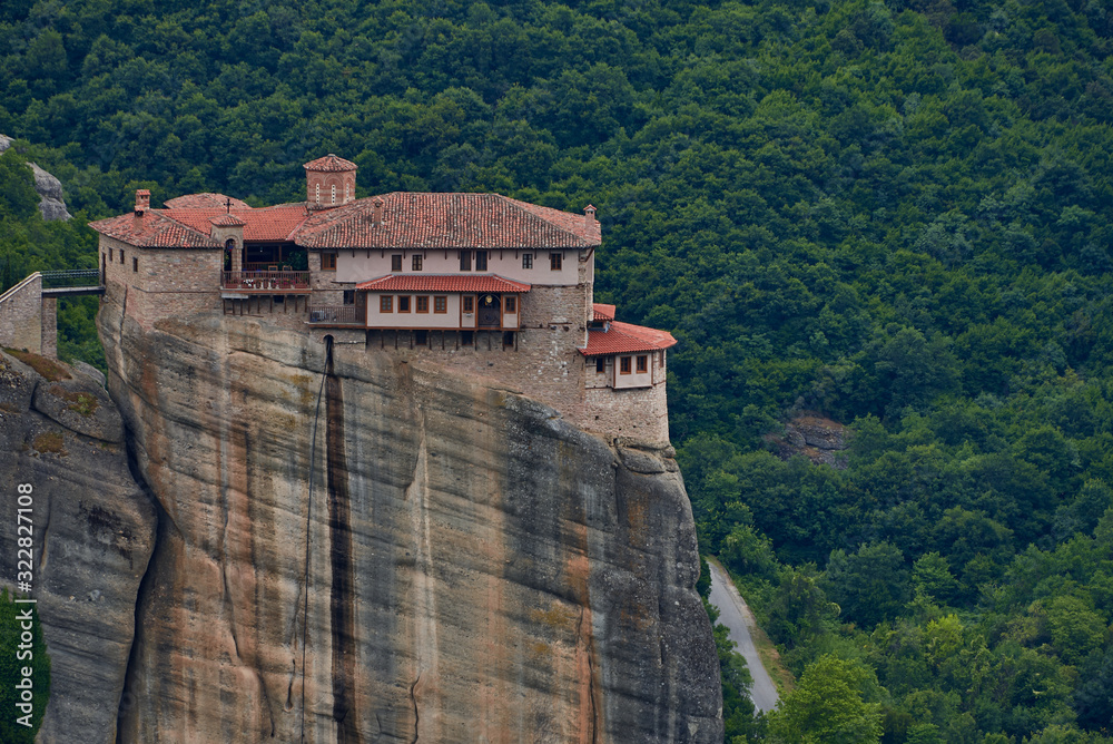 View of the Holy Monastery of Roussanou. Meteora monasteries. Thessaly. Greece. UNESCO World Heritage List.