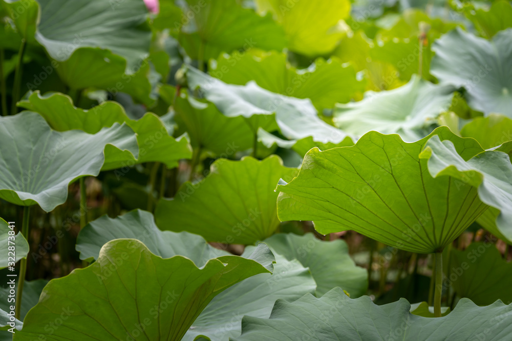 Big green leaves of a lotus flower