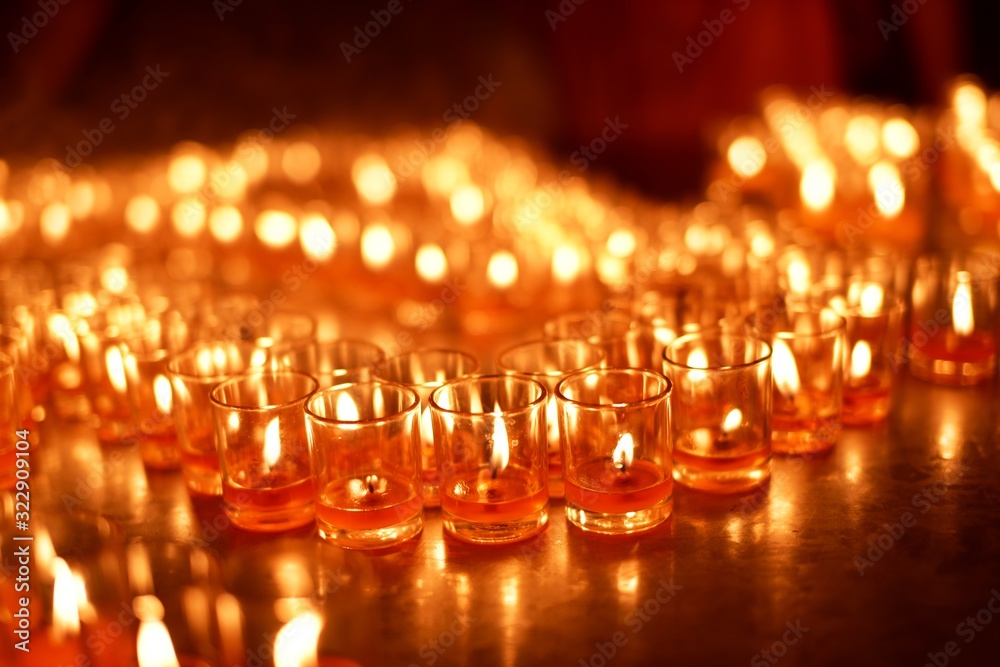 The light of candlelight on Makha Bucha Day Important Buddhist Day