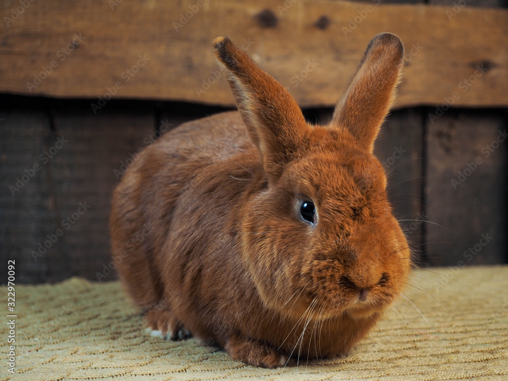 The purebred rabbit is a new Zealand red rabbit. Portrait of an animal