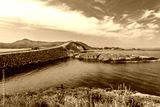 Atlantic Ocean Road (Norwegian: Atlanterhavsvegen), highway bridge, seaside mountain landscape, Norway