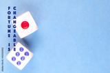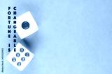 The image of dices on the colour background with the inscription "Fortune is changing"