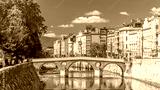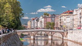 View of the Latin bridge timelapse, one of the oldest bridges of Bosnia and Herzegovina