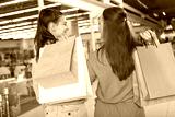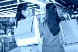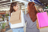 Rear view shot of a two female friends walking at the mall with shopping bags