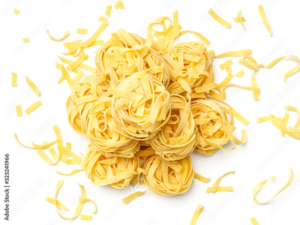 Italian pasta fettuccine nest isolated on white background