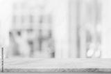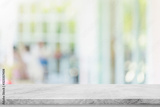 Empty white stone marble table top and blurred of interior restaurant with window view green from tree garden background background - can used for display or montage your products.