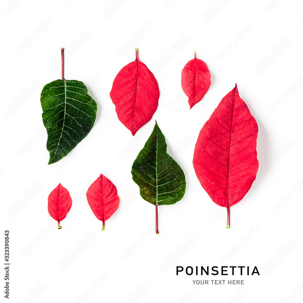 Poinsettia christmas flower petals and leaves