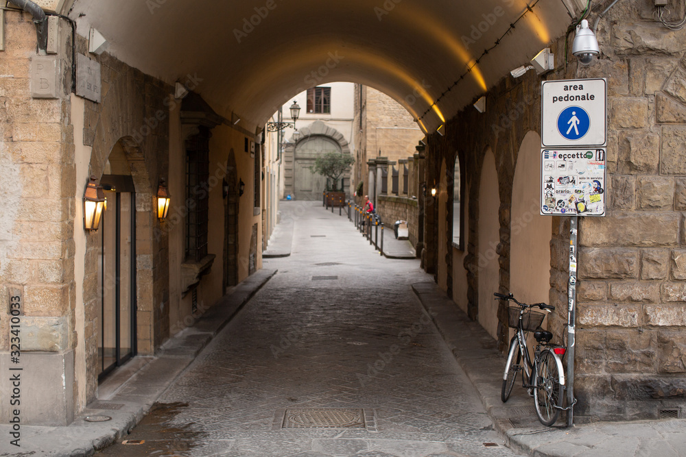 View of back alley and arch