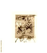 Briefmarke stamp Japan Nippon gestempelt used frankiert Tiger Neujahr new year 50 gelb yellow Tier animal 1998 lila purple Post letter mail Brief Ume vintage retro kawaii niedlich Tierkreiszeichen