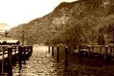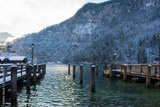 Beautiful winter landscape, mountains and lake in Berchtesgaden, Germany. Bavarian alps covered with snow