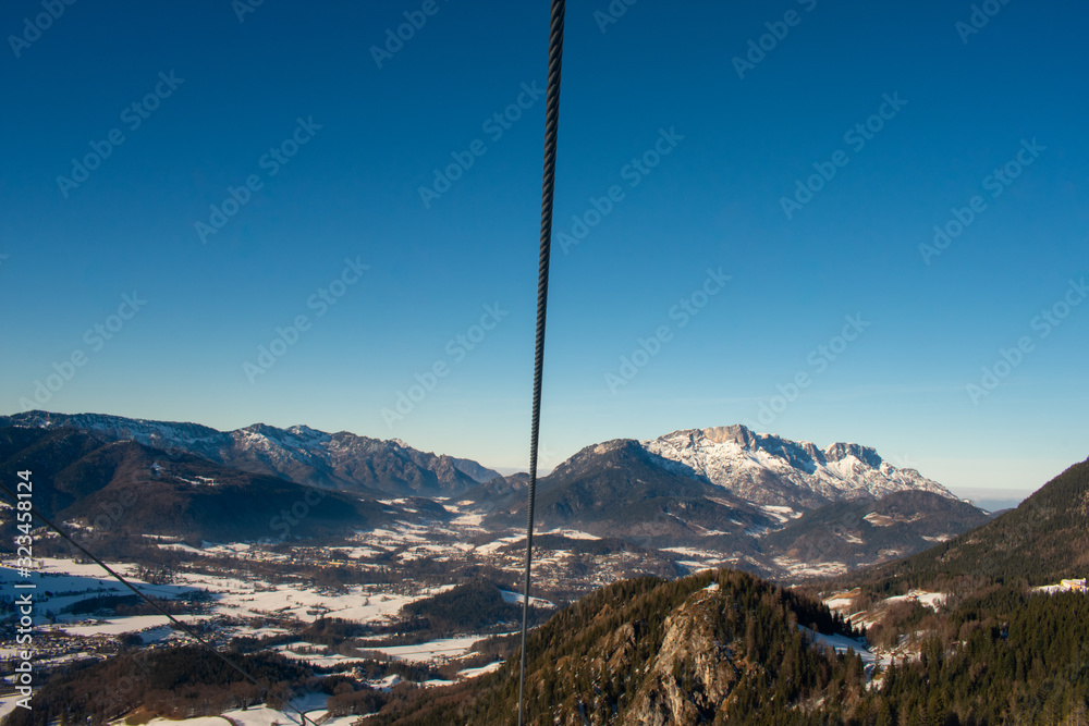 Berchtesgaden, Bavaria, Germany. View from Cable car on Bavarian Alps Mountains in Winter