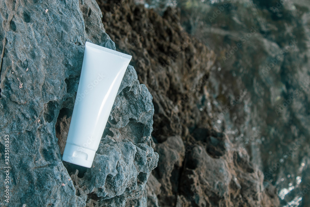 beauty treatment medical skincare and cosmetic lotion cream serum oil mockup bottle packaging product on rock stone nature background, healthcare and medicine concept