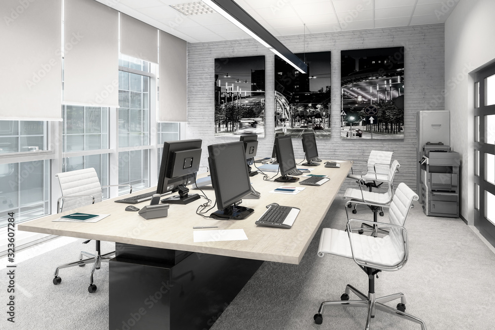 Common Computer Workplace Design (desaturated) - 3d visualization