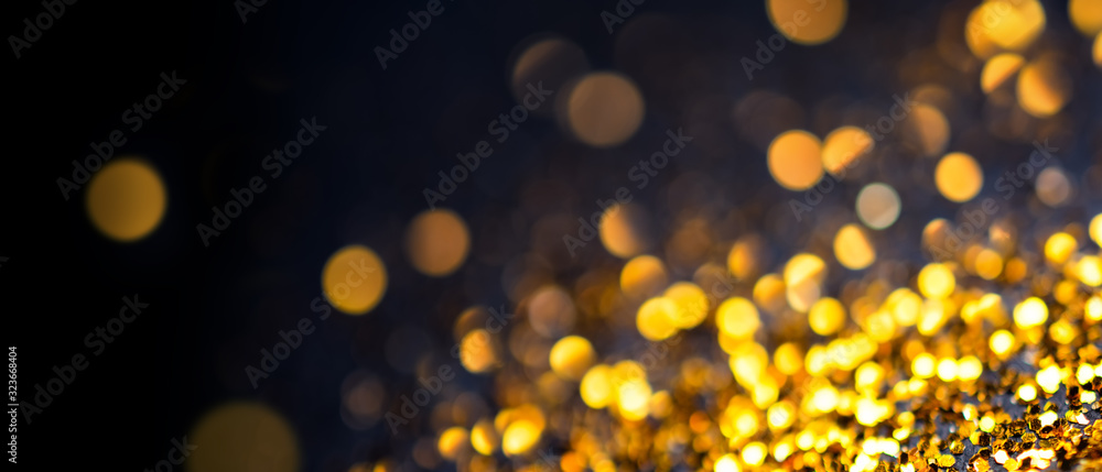 Abstract golden with black background with bokeh effect