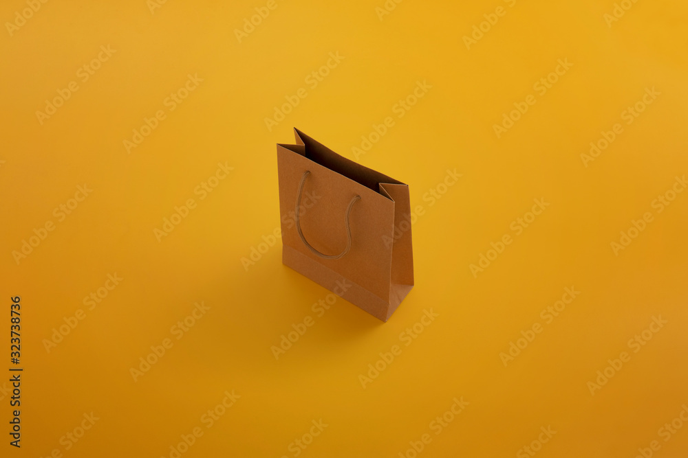 empty brown aper bag in isometric view, minimalism design.