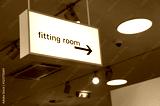 Closeup shot of the fitting room signage hanging from a ceiling in a clothing store