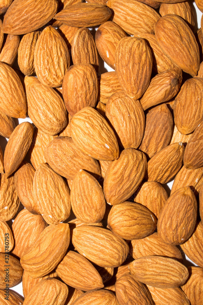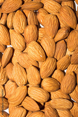 Nuts and almonds.Peeled almonds.Almonds are a genus of plants in the Rosaceae family.