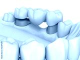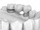 Porcelain Dental bridge of 3 teeth over molar and premolar. Medically accurate 3D illustration of human teeth treatment