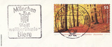 Briefmarke stamp Deutschland Germany Herbst Wald München Forest rot Herbstlaub leaves gelb Blätter 55 frankiert gestempelt used Slogan Werbung München Stadt Weltberühmter Biere Mönch