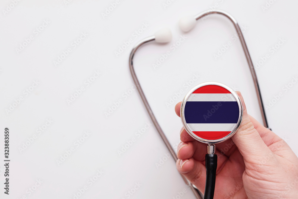 Thailand healthcare concept. Doctor holding a medical stethoscope.