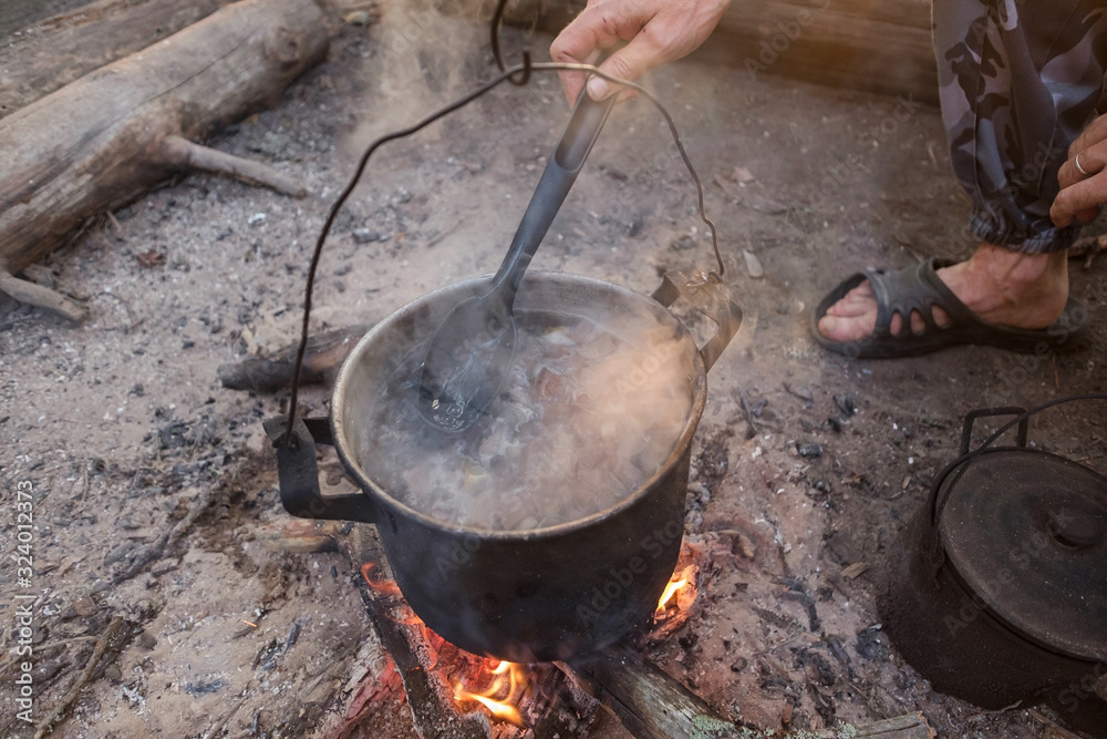 Man Cook Some Food in Bowler Camp