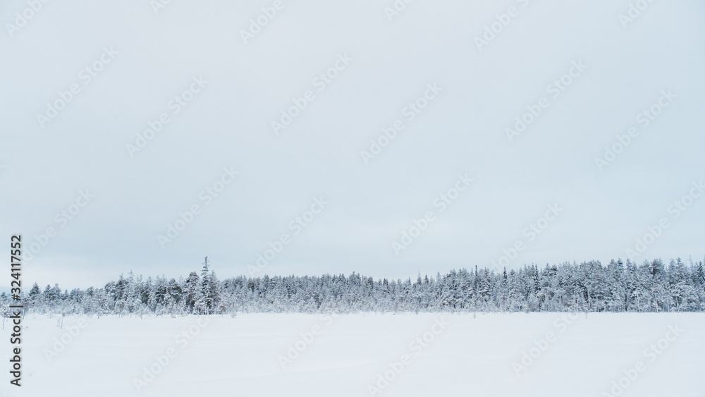 Winter beautiful landscape with trees covered with hoarfrost