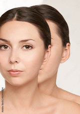 Pretty young girl. Before and after portrait. Aesthetic therapy. Big ear results