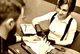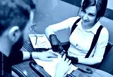 a young woman beautician makes a manicure for a man and cuts her nails with special tongs. Nail care. Men's manicure