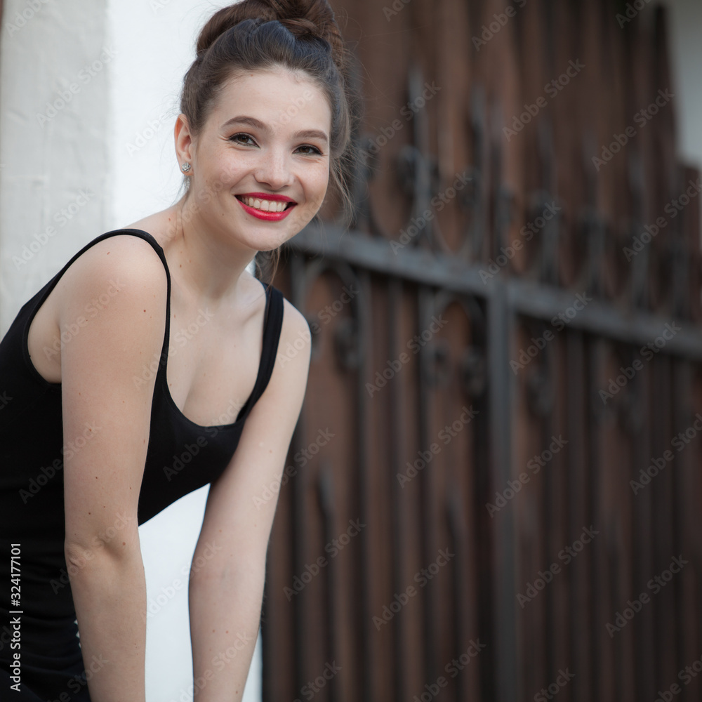 Portrait of beautiful young girl in summer garden.