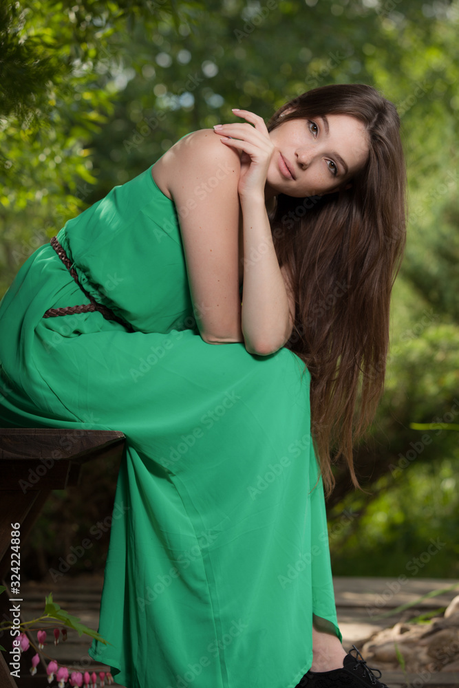 Portrait of beautiful young girl in summer garden.
