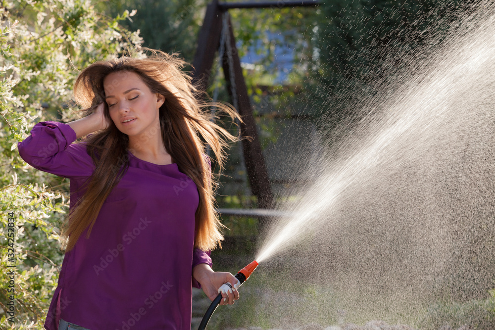 Portrait of beautiful young girl in summer garden.