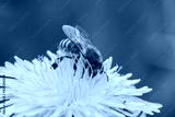 Honey bee on dandelion flower. Honey bee pollinating on spring meadow