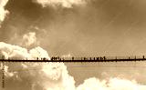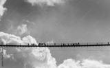 Silhouette of people crossing the suspension bridge at Geierlay, Germany