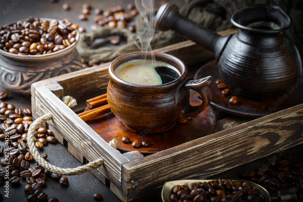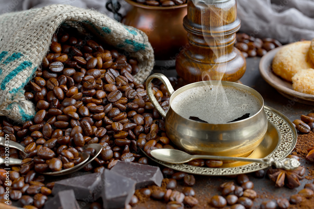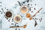 Espresso with Coarse Ground Sugar and Coffee Beans