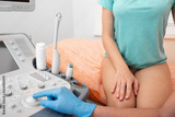 Transvaginal examination of uterus and ovaries. Gynecology. Ultrasound office