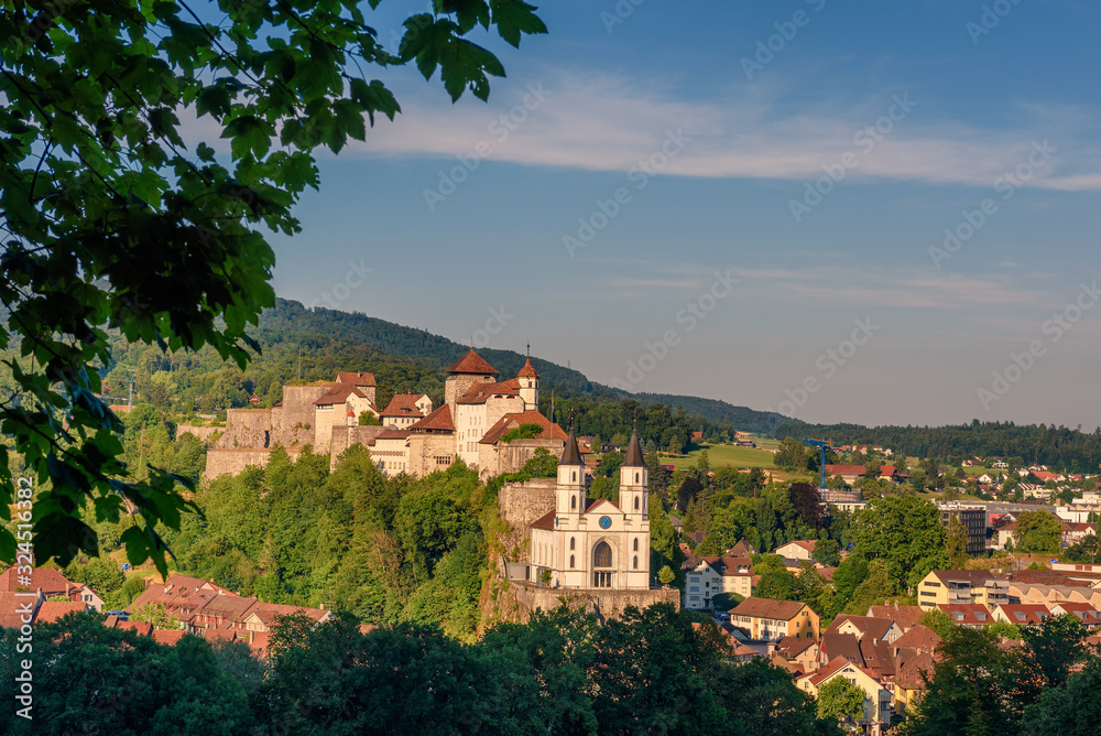 Cityscape of Aarburg and the medieval Aarburg Castle in Switzerland