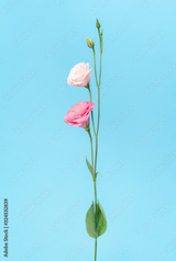 pink eustoma on blue background