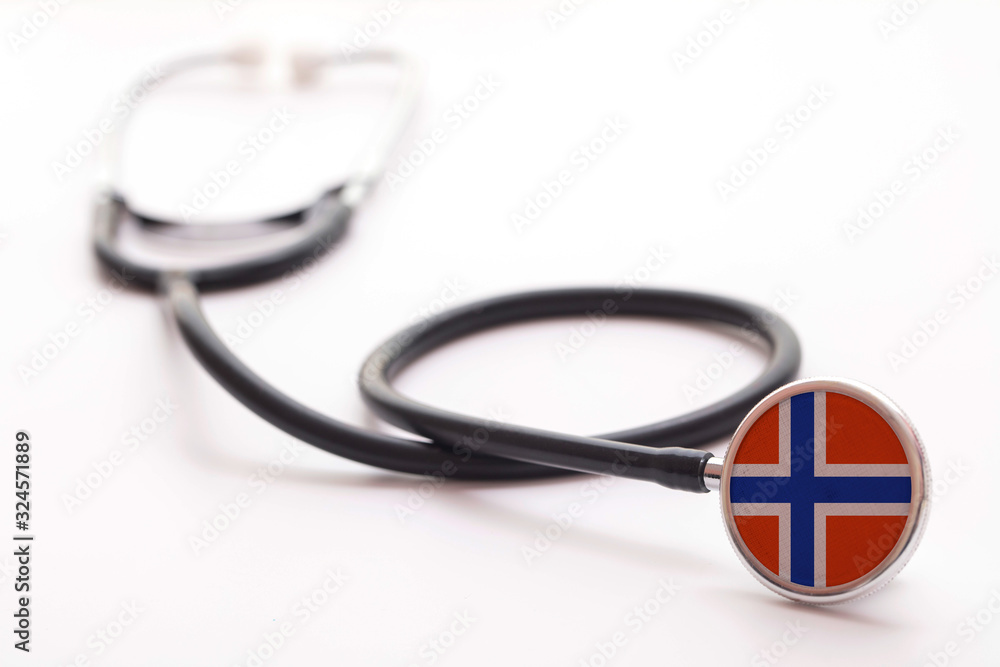 Norway healthcare concept. Medical stethoscope with country flag