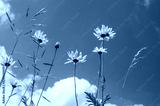 Summer wild flowers with grass on blue sky background