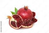 Isolated pomegranate fruit. One ripe red garnet isolated on white background.