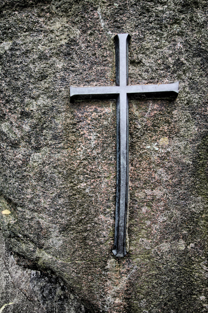 Christian cross on stone