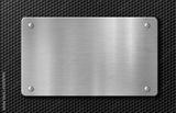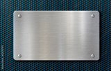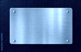 metal plaque or plate with rivets over blue background 3d illustration
