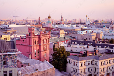 Urban landscape, roofs of the city center, Moscow, Russia.