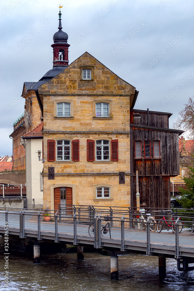 Bamberg. Old city embankment at sunset.