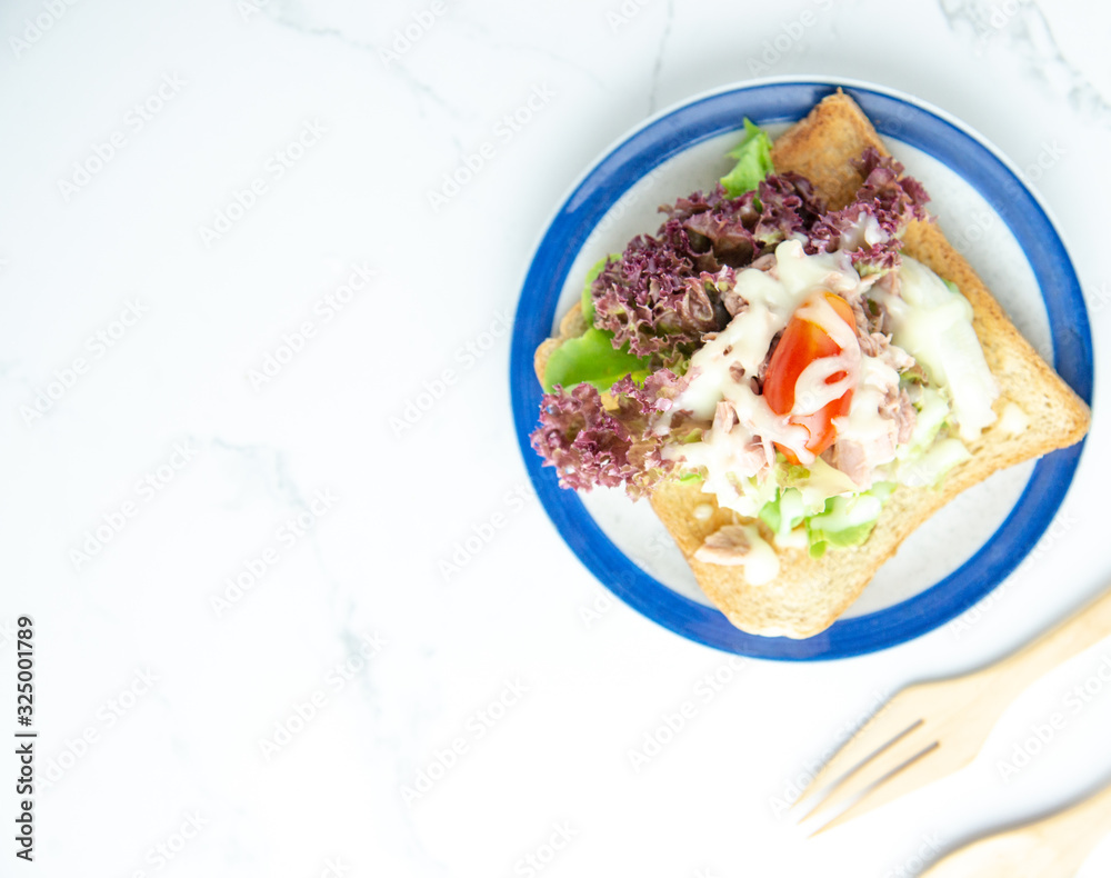 Bread with tuna salad and vegetables Bread with tuna salad and vegetables Healthy breakfast