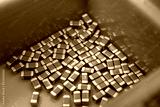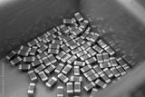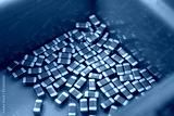 Abstract close-up 0603 SMT surface mount MLCC capacitors electronics components random scatter in storage container